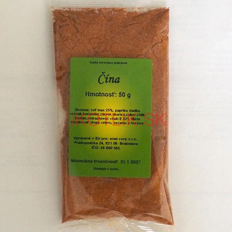 Zloženie: Soľ max. (25%), paprika sladká, cesnak, koriander, zázvor, škorica, látka zvýrazňujúca chuť a vôňu: glutamát sodný (E621), cukor, chilli, badián.