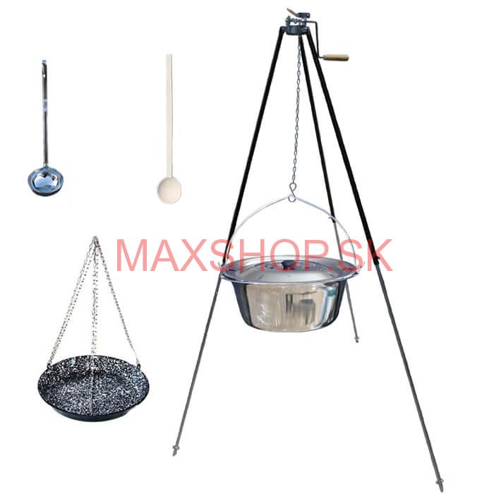 na vrchu má špeciálnu poistnú kladku, kde si môžete počas varenia nastaviť akúkoľvek výšku kotlíka alebo panvice