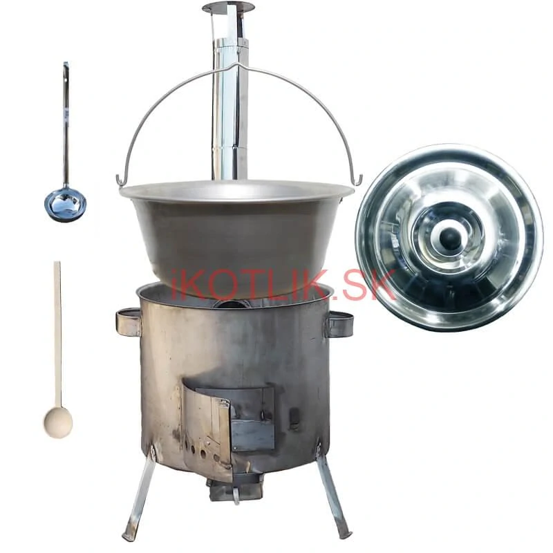 Kotlíková súprava na outdorové varenie gulášu a rybích polievok v prírode, v záhrade alebo v otvorenej kuchyne, predovšetkým pre chalupárov, chatárov, do kempu a na táborenie. Pri použití koša v kotlíku na varene mäsa, jaterníc, klobás, zeleniny do polievky a konzerv.