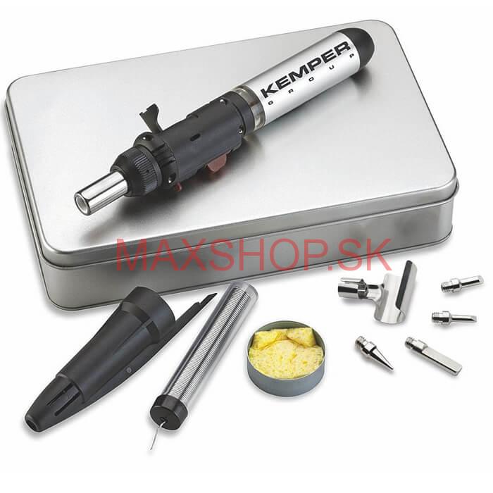 Plynová mikropájka PROFI SET: profesionálna plynová multifunkčná mikropájecí sada s otvoreným aj uzavretým plameňom v praktickej hliníkovej krabičke, transparentná2 ergonomické telo = ľahká kontrola hladiny plynu.
