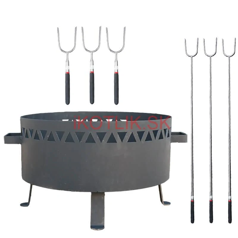 Prenosné ohnisko kov (1,5 mm) FIFO žiaruvzdorná farba PLUS 600 + Vidličky na opekanie teleskopické 6 ks