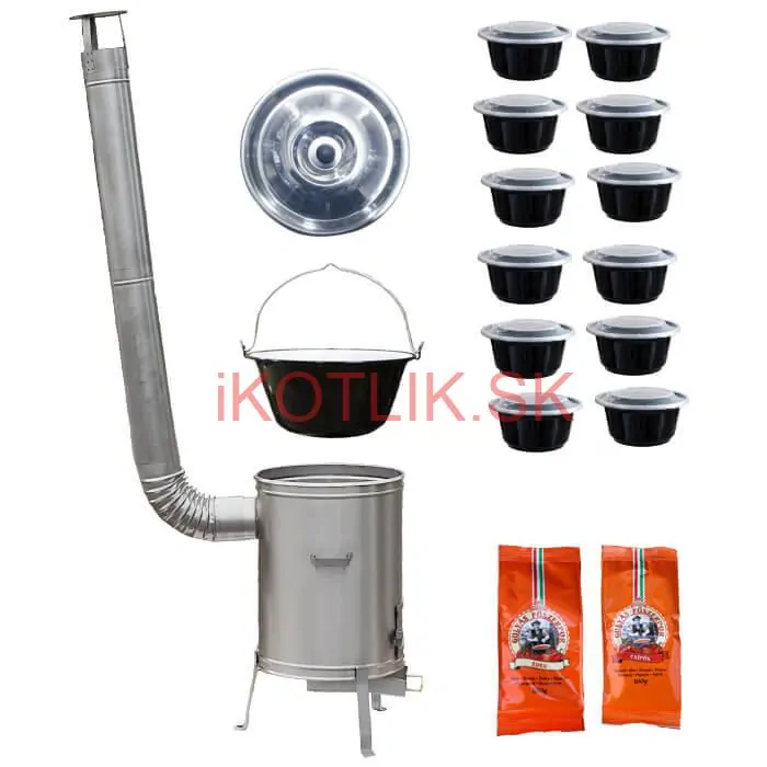 Kotlíková súprava na varenie gulášu a iných pochutín v záhrade, v prírode pre rodiny, rôzne spoločenské akcie a posedenia pri dobrom guláši.