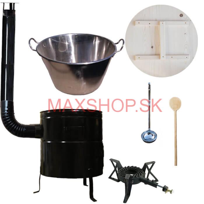 - Zabíjačkový nerezový kotol 100 L, kovová kotlina 60 cm, drevená pokrievka, horák 7 kW + dymovod
